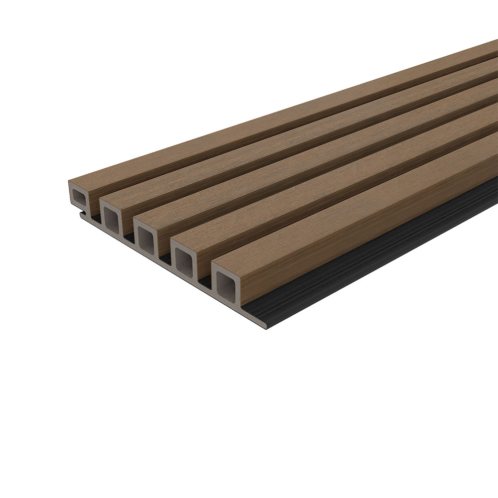 Noir European Siding is a premium choice for exterior walls, featuring exceptionally bold and distinctive black strips, a truly special feature that brings unparalleled sophistication and elegance to any façade. This Siding combines the toughness and longevity of a capped wood plastic composite with an engineered design. The shield gives the composite exterior wall panels unbeatable colors and textures, with high stain and UV resistance, making them long-lasting and ultra-low maintenance.